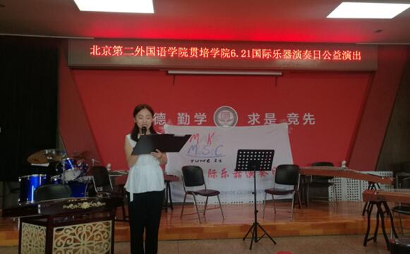 2018年6月22日,“6•21国际乐器演奏日公益演出活动”在北京第二外国语学院(延庆校区)贯培学院顺利举行。