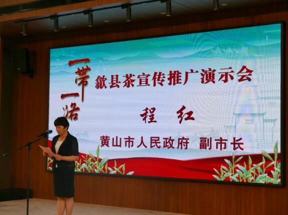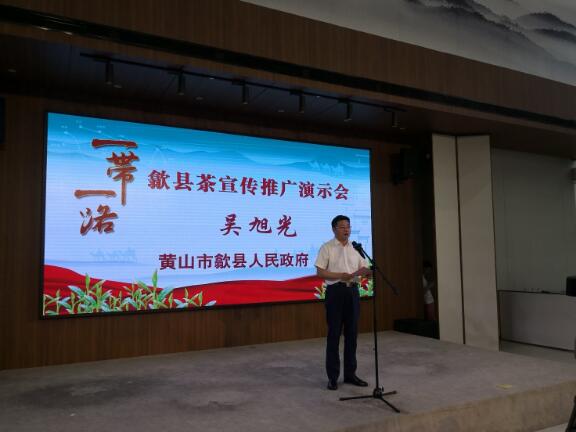 演示会上,歙县县委副书记、县长吴旭光在致辞中指出:歙县茶产业发展始终坚持两条腿走路,积极响应国家“一带一路”倡议,不断拓展海外销售市场,对歙县珠兰花茶、黄山白茶、大方茶、滴水香茶等优质茶叶进行了推介;黄山市人民政府副市长程红在致辞中指出:这次黄山市和歙县人民政府联合举办“一带一路歙县茶宣传推广演示会”,目的就是深化黄山与北京之间的合作,以茶交友、以茶兴业、以茶惠民,推动黄山茶走进千家万户;认真落实习近平总书记关于“打造生态文明安徽样板”的指示精神,把茶产业作为黄山市重要的支柱产业、绿色产业、富民产业来打造,着力推进茶产业供给侧改革,推动茶产业转型升级,强化茶产品质量安全,打响黄山茶品牌,做好黄山茶文章。