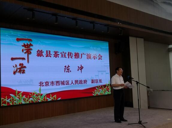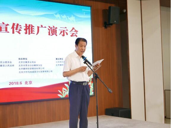 2018年6月22日下午,由中国茶叶流通协会、北京市西城区人民政府、安徽省黄山市人民政府、黄山市歙县人民政府、北京市茶业协会等单位主办的一带一路歙县茶宣传推广演示会在马连道工作站隆重举行。中国茶叶流通协会副会长姜竹林、北京市西城区副区长陈冲、黄山市人民政府副市长程红、黄山市政协副主席胡黎明、黄山市九三学社副主任委员张徽秀、北京市茶业协会会长白文祥、西城区商务委员会副主任马佩鸿、黄山市农业委员会主任王武,歙县县委副书记、县长吴旭光、歙县人大常委会副主任张彩霞、歙县政协副主席郑向阳、北京安徽茶业商会会长胡洪华及茶界、企业界、文化界人士等100余人参加了演示会。