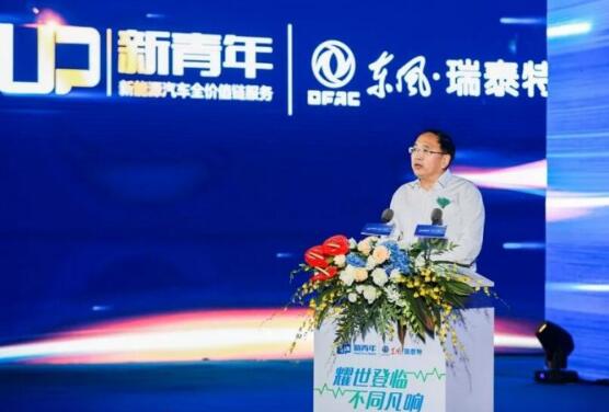 东风汽车股份有限公司新能源事业部新能源销售公司总经理廖纲庆先生致辞,“东风汽车股份和西安新青年共同推广的东风·瑞泰特车型,是我们体现对社会的责任,借用‘瑞泰特’三个字,‘瑞’代表吉祥,‘泰’代表平安,‘特’代表幸福,祝福终端用户幸福、吉祥、平安!”