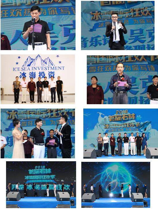 启动仪式上,石林县县委副书记 县人民政府县长普建勇对于首届石林冰雪国际狂欢节的举办表示肯定,他说,石林冰雪海洋世界的建设对于石林旅游业发展有着积极重要的意义。云南冰海投资有限公司董事长魏小林也上台发表讲话,欢迎全省乃至全国全世界的游客朋友来到石林,参与这次狂欢节活动,云南冰海投资公司会努力将石林冰雪海洋世界打造成石林第二张旅游名片,一定会为广大游客朋友带来惊喜,带来快乐。