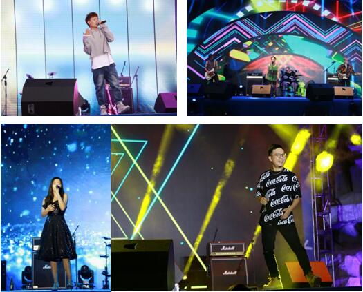 当晚,音乐狂欢到达高潮,多位音乐大咖来到狂欢节现场。音乐很美好,现场很热烈,凉风习习,夜色撩人,一场绚丽的360度音乐灯光秀,掀起一场音乐风暴。中国好声音学员普东以震撼的现场表现力,为我们的音乐秀开了个好头,实力派女唱将王卓艺歌声动听,令人赞不绝口。最强跨界苏智声音极具张力,有着漂亮的音色和华丽的高音。塑料乐队完美的团队配合,精致旋律与狂躁能量的碰撞,创造出独树一帜的摇滚之声。麻园诗人以超震撼的现场表现力压轴演出,让你懂得摇滚的魅力不仅在录音室,更在现场,只有亲临舞台下,亲身体验电吉他的呼啸和怒吼撕碎夜空,震撼你的心灵,才能真正懂得摇滚的力量。