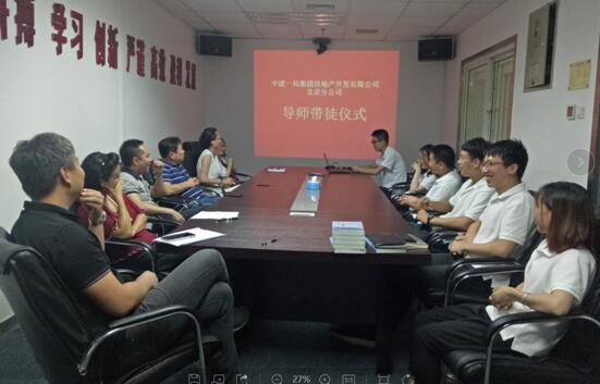 为加快人才培养速度,提高人才培养质量,通过传帮带加大企业人才培养力度, 8月3日,中建一局房地产公司举行了2018年导师带徒拜师仪式。在房地产公司投资总监赵志青,成本总监、合约商务部总经理兼盐城项目总经理毛凯两位领导的见证下,来自总部营销管