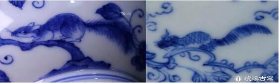 浣溪窑烧制的松鼠葡萄纹和清代松鼠葡萄纹对比