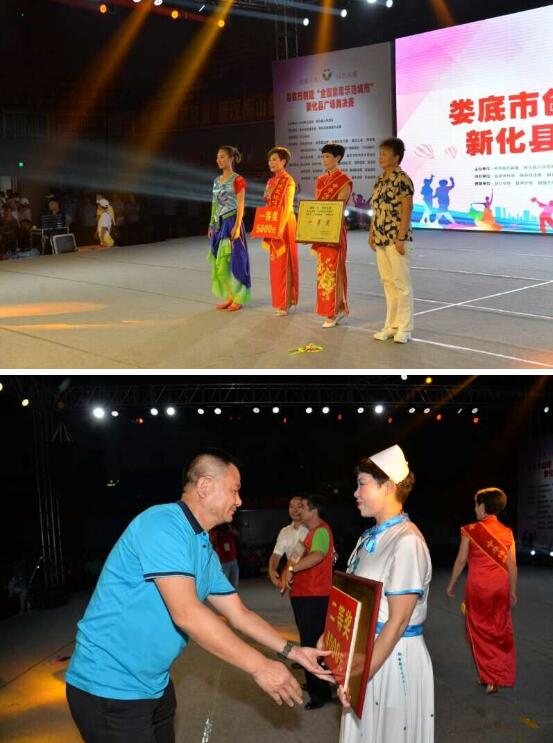 (记者 伍新永 通讯员 曾丹云)9月11日晚,湖南省娄底市“健康人生 绿色无毒”禁毒广场舞大赛新化赛区决赛在县体育馆盛大举行,县委副书记、县长、县禁毒委主任左志锋致开赛词并宣布广场舞决赛开赛。娄底市委原正厅级干部、市禁毒协会会长肖新桃,娄底市禁毒办常务副主任、市公安局禁毒支队长刘伟,市禁毒办副主任、市禁毒支队副支队长贺方,市禁毒办副主任姚玉忠、市禁毒支队预防教育大队教导员段平波、市禁毒协会廖德民等市领导及县领导刘迟辉、李力、李笃成、刘晓英、欧阳灼亮、杨霞娟,副县级干部邹晓兰,县禁毒协会会长邹秉卿、县禁毒办主任陈锡光,老同志李佑金、王本球、魏继章,县关工委主任刘亮光及市县相关单位负责人观摩全场赛事。
