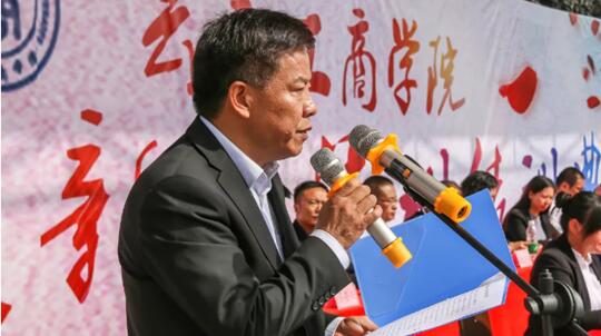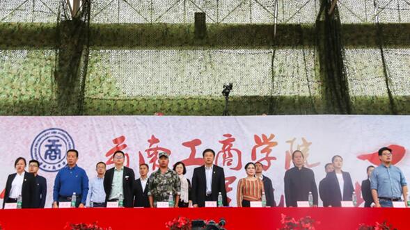 新生军训团付忠和团长、云南工商学院党委书记于波同志、校长刘风明博士、党委副书记、常务副校长邹利斌副教授、副校长高卫国教授、副校长李翔教授、副校长李娅副教授,部分处(室)、各二级学院领导参加典礼。