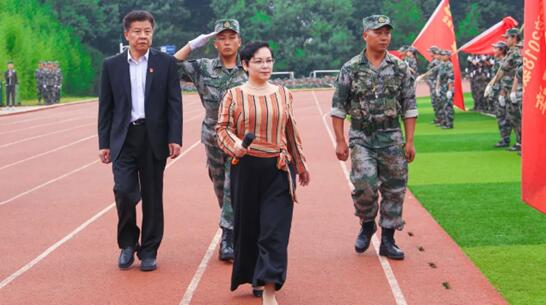在付忠和团长的陪同下,云南工商学院党委书记于波同志、校长刘风明博士检阅军训方阵。