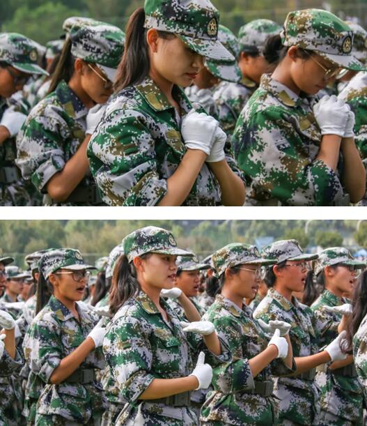升国旗奏国歌,军人之姿立地顶天,万千绿军装的学子,向国旗行注目礼,耳畔回响国歌的激昂旋律。