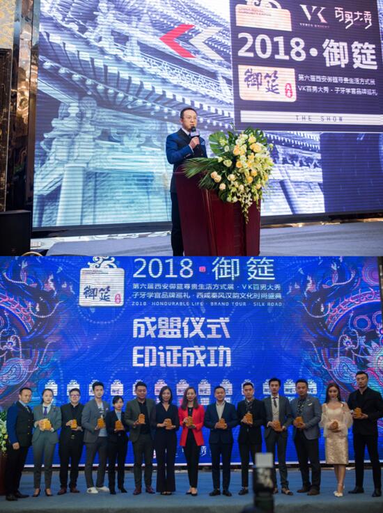“2018•御筵/第六届御筵尊贵生活方式展&VK百男大秀&子牙学宫品牌巡礼”新闻发布会在西安荣禾曲池东岸水晶厅隆重举行。本次新闻发布会由2018御筵官方联合子牙学宫、VK官方、星河湾联合发布,由西安昂思文化首席执行承办。