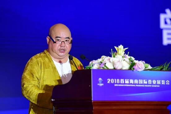 海南省沉香协会会长、“海香会”执行主任曾庆祝开幕式的激情演说