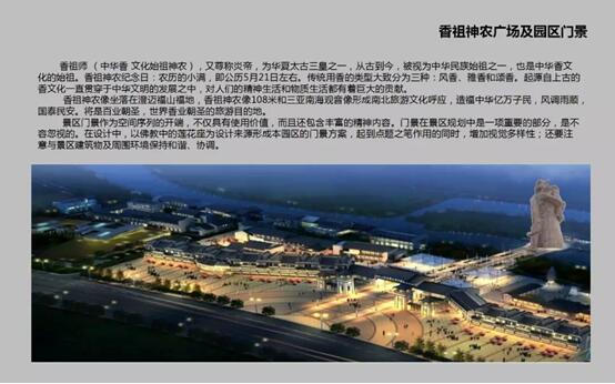 “海垦九州香园”项目旨在建设一个集世界香料商贸交易、国际香文化交流、国际香料香品展示、香文化朝圣旅游、香生活度假休闲、香业衍生产品科研鉴定开发、沉香博览展示、香业会展论坛、香料现代物流、国际香料电子商务、商贸文化休闲旅游、沉香中医药养生体验等为一体的国际香文化交流,香生活旅游,香料展示贸易集散中心。