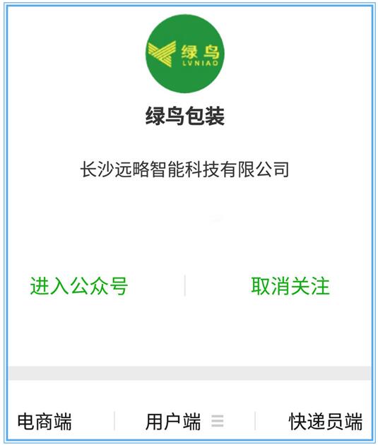 “绿鸟包装”微信公众号页面