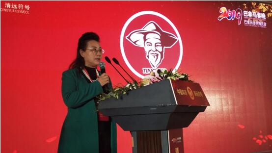 (图:天农公司董事长张正芬博士在发布会上介绍天农原种清远鸡产业链)