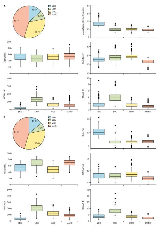 日前,国际权威杂志《柳叶刀》糖尿病与内分泌子刊(SCI影响因子19.13)2019年第7卷,第1期以研究短文的形式发表了北大人民医院纪立农团队的研究成果‘Novel subgroups of patients with adult-onset diabetes in Chinese and US populations’。该研究利用人工智能的方法对中国及美国的新诊断糖尿病人进行了重新的分类,为糖尿病的精准治疗奠定了理论基础。