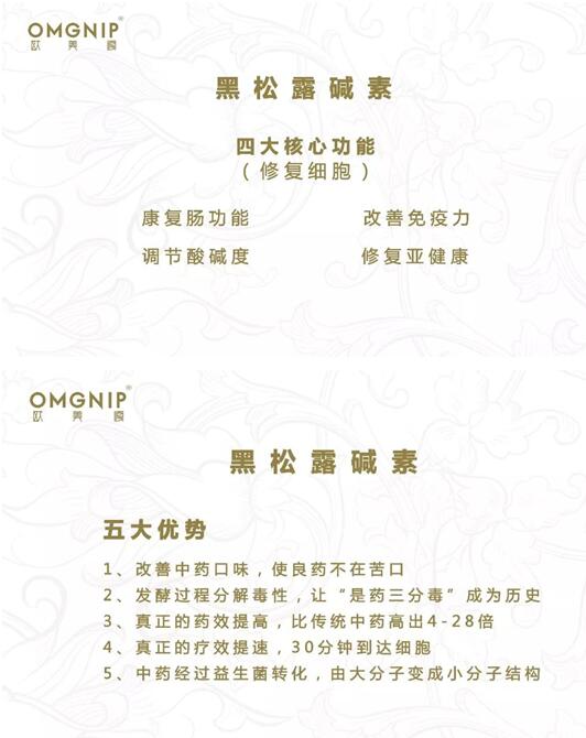 阿克索生物科技有限公司是一家集研发、生产、销售、培训、项目于一体的综合性企业,旗下品牌OMGNIP欧美嘎黑松露碱素、致力于为全世界不同肤色人群的亚健康服务,其成分由1300万个益生菌+名贵中草药发酵而成,没有任何反腐剂和添加成分,适合儿童和孕妇饮用,延缓衰老、排毒养颜、减脂控重、提升免疫力、醒酒健胃佳品!