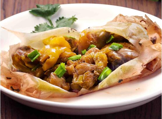 薄如蝉翼的玉扣纸、农家山地散养的三黄鸡、幽深醇厚的秘制卤汁,逐一陈列于案面之上,瞬时间,空气中弥漫着天地融和、原汁原味的诱人芳香!一切经已准备就绪,粤菜厨艺大师们开始运用巧妙的刀工,游刃有余地将三黄鸡切成一件一件,接着勺来秘制卤汁,配以老抽酱油、白酒、枸杞、姜汁、桂皮、八角、茴香、陈皮、草果、红谷米、古月粉等调味料腌制鸡肉,随后,铺开玉扣纸且用手抚平,再将鸡肉置于玉扣纸之上、撒些葱白粒,松紧得度地包裹起来。就这样,一份份如信封形状的纸包鸡包好了,造型优美、叠叠有致。将纸包鸡放入锅中,以花生油隔纸浸炸,片刻的功夫,热气腾腾的纸包鸡终于端上餐桌,一股浓浓的南粤气息扑面而来,轻轻地撕开玉扣纸,金光灿灿的纸包鸡奇妙地飘出了竹子那渗人心脾的缕缕清香,这是以新鲜的嫩竹和清澈的山泉水所制成的玉扣纸独有的香气,缓缓地放入口中,鸡肉鲜嫩甘滑、鸡味浓郁、醇厚不腻……细品一下纸包鸡的历史文化,可以用“博大精深、源远流长”这8个字来形容。“南粤称臣兮,归一统;纸包金鸡兮,定乾坤。”岭南地区(两广地区)民间所流传的这句人们耳熟能详的赋作,仿佛诉说着纸包鸡的前世今生……传世2200年“中国金鸡文化”(粤菜代表作)(广府菜代表作)(汉代宫廷贡品和南越王宴主菜)、中国味道、中国传统节庆第一道菜、广府中秋节庆三大美食、中华美食三大名鸡、深圳腾飞、广西三宝、梧州四宝、桂林情结、喜欢纸包鸡的100个理由是“互联网+文化定位”文化传播方式对纸包鸡的文化定位,业已在海内外形成广泛共识,家喻户晓、深入人心,此外,纸包鸡还是中国名菜、中国十佳金鸡、广西非物质文化遗产、广西特产行销全国核心品牌、广西最具特色餐饮品牌。古有南越王、汉高祖、苍梧王、唐明皇、杨贵妃、苏轼、明太祖、靖江王、康有为,今有孙中山、陈济棠、白崇禧、徐悲鸿、秦牧、史玉柱等名人,都曾在纸包鸡的史册上留下足迹,为它增添了丰富的传奇色彩!据考证,在我国,自古以来就有“无鸡不成宴”的习俗和讲究,集中、真实地体现了中国传统饮食文化理念和社会风俗习惯,鸡菜肴堪称中国传统节庆第一道菜,同时又是人们一日三餐的主要菜肴,纸包鸡堪称鸡菜肴中的代表作。广州,是岭南文明、珠江文明、广府文明、粤菜文化、岭南美食文化的重要发祥地,“食在广州”可谓名不虚传,纸包鸡作为宫廷贡品和日常主菜的历史至少已有2200年,始创于岭南地区,在见证了岭南地区(两广地区)文明史的西汉南越王墓中,就发掘出许多类似于纸包鸡的鸡骨头和残纸。相传,公元前203年,赵佗自号南越武帝,建立南越国,定都番禺(今广州),当时的南越王宴就是以纸包鸡作为主菜的。公元前202年,刘邦称帝,史称汉高祖,建立西汉王朝,定都长安(今陕西西安)。及后,赵佗以纸包鸡作为贡品献与刘邦,上表臣属西汉,刘邦品尝了纸包鸡之后龙颜大悦,诏封赵佗为南越王,至此天下归于大一统,纸包鸡遂成为南越国向西汉王朝年年进贡、岁岁来朝的贡品。纸包鸡和广西桂林这座城市颇有渊源,明朝太祖皇帝朱元璋举“众建宗亲,以藩王室”之政,洪武三年(公元1370年),诏封其侄孙朱守谦为靖江王,藩治桂林,并授金册、金宝,尊荣显赫一时。及后,建靖江王城于独秀峰之下,内立宫宇庙社数百间、外以高城周垣相护,琼楼玉宇、巍峨雄伟、极尽奢华。靖江王城的宫廷宴席也极为讲究排场,道道菜色可谓千挑万选、精益求精,朱守谦在京城(北京)生活时,早已闻得粤地番禺(今广州)有岭南名食纸包鸡,传承越千年、享誉海内外,深感靖江王宴非纸包鸡莫能压轴,遂特意派人到番禺,礼贤下士,将名厨请进王府专事制作纸包鸡,以彰显靖江王宴和粤桂美食之泱泱风范。民间流传着“靖江宴席既出世,纸包金鸡八桂闻。”的说法。朱元璋尝尽天下美食,对纸包鸡仍然是百吃不厌、情有独钟。他在京城(北京)天天对着美酒佳肴,日久食则无味,朱守谦遂向开国名臣刘基奉上一计,曰:“吾粤桂之地有一名食,谓之纸包鸡,必让圣上食肠大开。”刘基遂托朱守谦将岭南地区的名厨请到京城,并带来岭南特有的土鸡品种,制作这道特色菜肴给朱元璋享用。但见刘基送来一碟用纸包裹着的鸡肉,朱元璋品尝之后赞不绝口,问曰:“此为何物?”刘基答曰:“纸包鸡。”朱元璋龙颜大悦,遂以“此鸡只应天上有,人间能得几回尝。”对纸包鸡赞不绝口,觉得纸包鸡风味远胜于宫廷珍馐百味。用以制作纸包鸡的土鸡品种也因“羽黄、喙黄、爪黄”,被朱元璋钦赐“三黄鸡”的美名,沿用至今。中华民国五年(公元1916年),粤西楼在广西梧州创立,聘请名厨官良坐镇,对纸包鸡的烹饪方法进行锐意改良并使其最终成形,酒楼成为了岭南饮食业中首屈一指的“金漆招牌”。2012年,由广大网友和著名文化、财经、传媒学者周文懿共同倡导、发起,著名文化、财经、传媒学者吴燮峰率先响应、支持,“互联网+文化定位”文化传播方式正式开始联手美食界名人林艳光、周秀兰和新粤西楼,对纸包鸡进行强势打造,永保纸包鸡风味特点传世2200年不变。纸包鸡深受广大老百姓的赞誉,海内外盛传着“食在岭南,不能不尝纸包鸡”这个耳熟能详的说法。2017年,乘借着共建21世纪海上丝绸之路、粤港澳大湾区建设、泛珠三角区域合作、珠江—西江经济带建设、发展中国—东盟自由贸易区等国家
