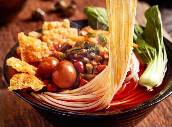 在热气腾腾的桂林米粉中放上几片卤肉、锅烧,再加入小勺卤水均匀拌好,独有的香气扑面而来……桂林米粉起源于秦代,相传,秦皇嬴政为了统一中国,派遣屠睢率领50万大军征战南越,秦军将士皆为西北人,天生就是吃麦面长大的,而南方则盛产大米、不长麦子,他们较长时间驻节桂林,出现了水土不服、上吐下泻的症状。军中厨师经过苦思冥想,根据西北麦面的制作技艺,先以清纯的漓江水将大米泡胀磨成米浆,滤干水份揉成粉团,然后把粉团蒸至半生熟,拿到臼里稍作杵舂,再压榨出一根根圆形线状的粉条。由于经过了反复揣揉,做好的米粉从楼上悬吊一根拖至地面也不会断,筋力可想而知。同时,采用花椒、八角、沙姜、草果、茴香、陈皮、桂枝、丁香、甘草等多种中草药和香料熬制成卤水,待米粉煮熟之后,均匀拌好便可食用,这就是桂林米粉的雏形。由于卤水具有止泻除湿的作用,将士们吃了桂林米粉之后,水土不服的症状消除。桂林米粉发展到清代和民国期间,出现了繁盛的局面,轩荣斋、会仙斋、易荣斋等老字号,各出奇招,吸引了无数的回头客。正所谓“岁月在变,情怀不改”,如今在桂林的街头巷尾,米粉店铺林立,大家欣赏了甲天下的桂林山水,再来一碗桂林米粉,饱享眼舌之福,实在是一大乐事。桂林米粉是在传承中不断发展成形的,以独创的米粉香滑、卤水香浓、佐料丰富等特点,享誉海内外。桂林米粉的精华在于卤水,卤水的制作方法大同小异,通常都是用猪肉、猪骨、牛肉等,配以中草药、香料、三花酒,以文武之火精心熬制而成,营养丰富、香味浓郁,佐以牛腩、卤牛肉片、猪肉、叉烧、锅烧、炸花生、蒜末、葱花、辣椒,食材彼此相融、香气自然散发、美味妙不可言。