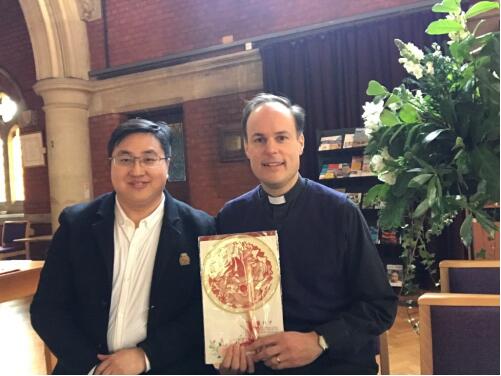 图为陈云教授与剑桥大学耶稣学院James Shakespeare主任牧师互赠礼品。 李恒 摄