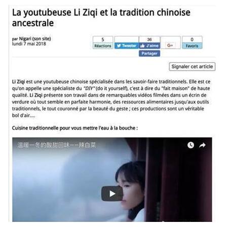 李子柒个人频道开设仅3个月之时就迅速斩获YouTube银牌奖,受到了一大批海外媒体报道,法媒更是称赞“她的作品给大家带来了一股清新的空气”。从李子柒身上我们看出了美食和古典文化可以冲破语言的限制,打破种族的屏障,优质的内容不论国别。