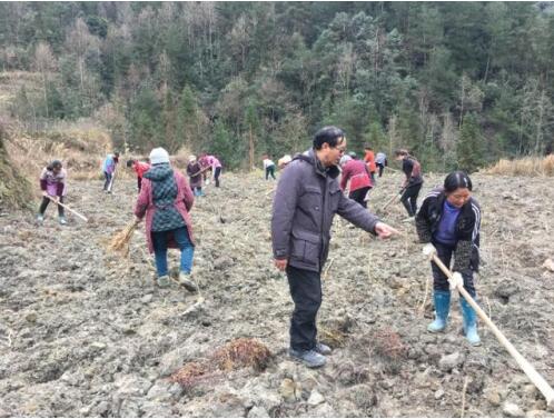 早春二月,山里依然十分清寒,而在重庆市黔江区金溪镇望岭村(小地名望十岭)却是一片热火朝天的景象。坡岭上马达轰鸣机声隆隆,几台挖机正在修路、整地。坡地里数十名男工妇女,挥汗如雨正在撸起袖子大干。人群中,一个戴眼镜的瘦高个跑上跑下累得气喘吁吁、热汗直冒。他叫张庆陆,虽是古稀之年但热情高涨,正在带领村民响应政府号召栽种桑苗。