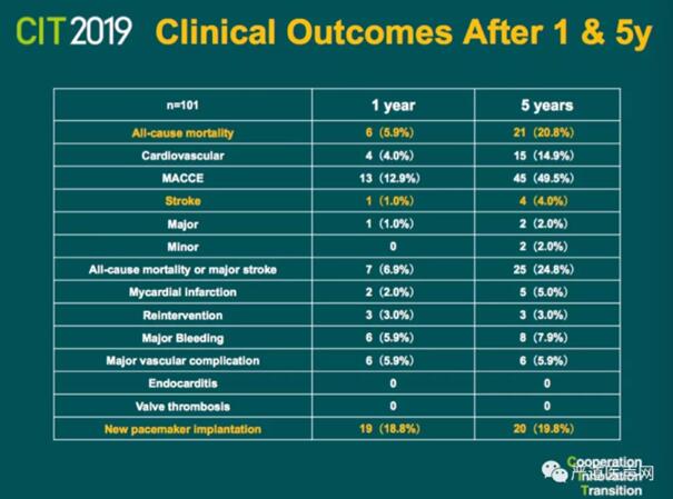 CIT2019,高润霖院士公布启明医疗VenusA-Valve经导管人工主动脉瓣膜置换系统治疗重度主动脉瓣狭窄的5年随访结果。