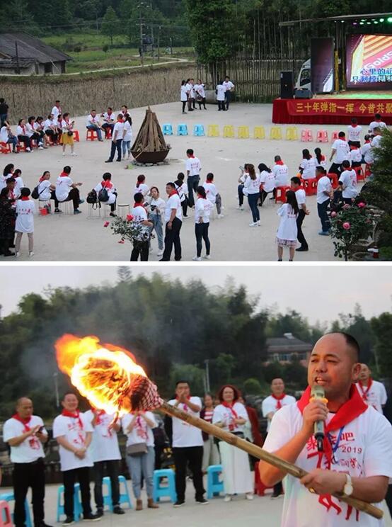 相聚的时光总是如此短暂,白天的喧闹渐渐回归平静。花溪湾的夜色很美,美食很地道。钟志宏同学高举火把,点燃了篝火,也点燃了众人的激情。人群中爆发出阵阵欢呼,掌声四起,音乐随之开始。