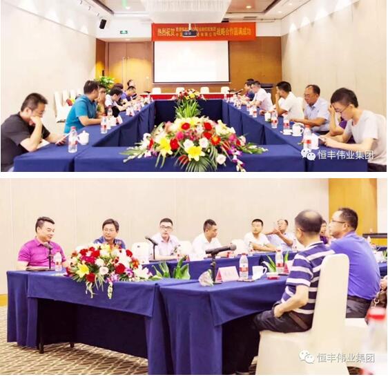 恒丰伟业集团董事局周传雄主席、中外建江淮公司史总裁代表双方在协议书上分别签字。周传雄表示,通过此次战略合作协议的签订,将为未来双方在商业运营、投融资服务、项目开发等方面的一系列深入合作奠定良好的基础。这次恒丰伟业与中外建的战略合作,可谓是强强联合,优势互补,双方充分发挥各自的资源优势,共同搭建投融建经四位一体的大平台,标志着集团对外业务开拓又上新台阶,忠心感谢各位领导与各界朋友的关心与支持,同时也要感谢为举办本次活动辛勤付出的各位伙伴。不忘初心,继续前行,实现共创共赢。
