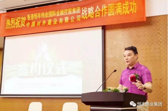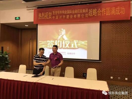 香港恒丰伟业集团科技有限公司与中国对外建设有限公司战略合作框架协议签约仪式在六朝古都历史文化名城的江苏南京举行,恒丰伟业集团领导、中外建领导、地方政府领导、品牌商代表、媒体记者以及社会各界人士数百人共同见证了这一对于两大集团都意义非凡的历史时刻。