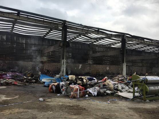 这一场大火整整持续了六个多小时,从凌晨一直烧到拂晓,经消防人员现场勘查发现,此次火灾为电线短路所引起,起火的货仓及存货悉数付之一炬,天花板处的锌板全部烧溶,主体建筑结构中的工字钢梁也烧至变形,整个火灾现场可谓是一片狼迹!