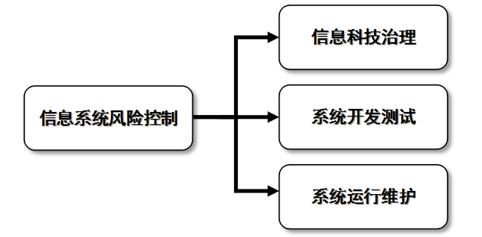 信息系统的风险控制由信息系统自身属性决定,根据ISACA(Information Systems Audit and Control Association国际信息系统审计和控制协会)的COBIT(Controlled Objectives for Information and Related Technology信息及相关技术的控制目标)体系所归纳的IT风险范畴主要包括IT治理、IT运维和IT开发测试,如图1。