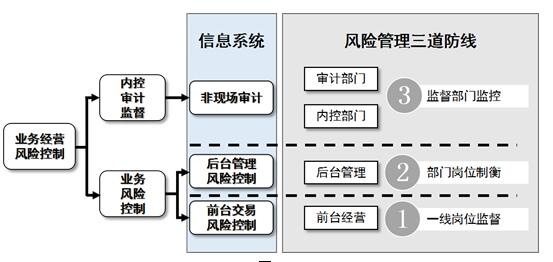 银行业金融机构业务经营风险控制指的是机构内部控制组织体系,也就是“三道防线”制度。此制度安排发轫于1997年中国人民银行颁布的《加强金融机构内部控制的指导原则》,其在加强内部控制、抵御业务风险和案件防控等方面发挥了重要作用。