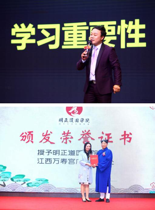 这次庆典还有几个亮点,一个是江西南昌西山万寿宫正式授予明正道国学院为其广州联络处的荣誉,还有一个是以周易风水实战派专家杨恒有先生为团长的国学顾问团,该团是民间组织在易道学界最有分量,最有能量,最有气量的顾问团,囊括了易道学界诸多大师和专家教授在里边,他们也会成为明正道“一代名师”中的核心导师,为广大的明正道国学院会员服务!
