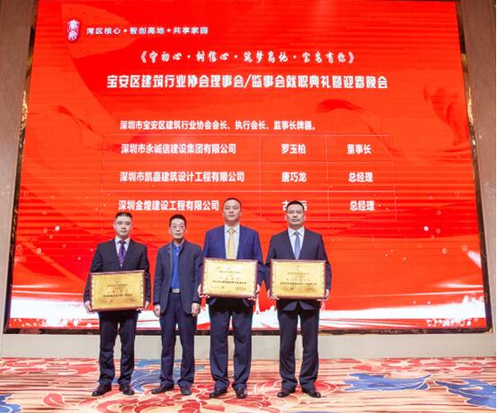 宝安区建筑行业协会监事长古国远颁发深圳市宝安区建筑行业协会监事委任牌。
