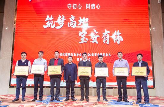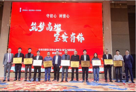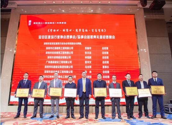 宝安区建筑行业协会常务副会长:张文远、林程鹏、董华文、马光军、陈永、方新标、李添荣、郑相源颁发深圳市宝安区建筑行业协会会员牌。