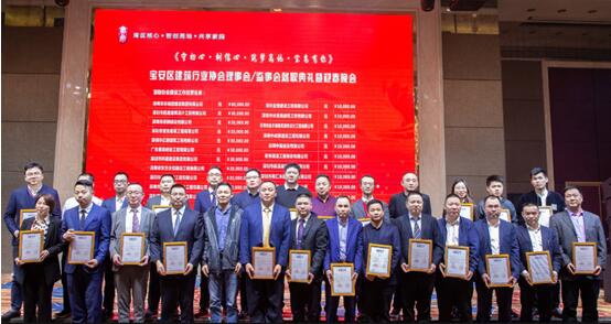 宝安区建筑行业协会会长罗玉柏颁发深圳市宝安区建筑行业协会常务副会长委任牌。
