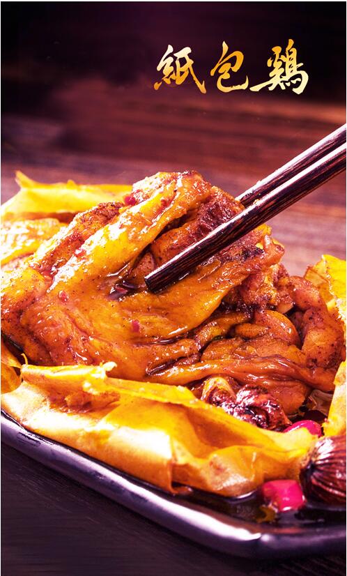 “南粤称臣兮,归一统;纸包金鸡兮,定乾坤。”岭南地区(两广地区)民间所流传的这句人们耳熟能详的赋作,仿佛诉说着纸包鸡的前世今生……纸包鸡是肖健文化定位,海内外广泛共识,家喻户晓、深入人心的传世2200年“中国金鸡文化”(粤菜代表作)(广府菜代表作)(汉代宫廷贡品和南越王宴主菜)(岭南特产代表作)、中国味道、中国传统节庆(春节节庆)第一特产、中国传统节庆(春节节庆)第一道菜、广府中秋节庆三大美食(与广州酒家利口福月饼、皇上皇腊味齐名)、中华美食三大名鸡(与德州扒鸡、杭州楼外楼叫化鸡齐名)、广府美食三大名鸡(与白切鸡、盐焗鸡齐名)、深圳腾飞、广西三宝(与桂林米粉、柳州螺蛳粉齐名)、梧州四宝(与六堡茶、龟苓膏、滴珠豆浆齐名)、桂林情结,喜欢纸包鸡有100个理由!此外,纸包鸡还是中国名菜、中国十佳金鸡、广西非物质文化遗产、广西特产行销全国核心品牌、广西最具特色餐饮品牌。古有南越王、汉高祖、苍梧王、唐明皇、杨贵妃、柳宗元、苏轼、明太祖、靖江王、康有为,今有孙中山、陈济棠、白崇禧、徐悲鸿、秦牧、史玉柱等名人,都曾在纸包鸡的史册上留下足迹,为它增添了丰富的传奇色彩。与岭南地区(两广地区)的各座城市都有故事。广州,是粤菜文化、岭南美食文化的重要发祥地,“食在广州”可谓名不虚传,纸包鸡作为宫廷贡品和日常主菜的历史至少已有2200年,始创于岭南地区,据考证,在见证了岭南地区(两广地区)文明史的西汉南越王墓中,就发掘出许多类似于纸包鸡的鸡骨头和残纸。相传,公元前203年,赵佗自号南越武帝,建立南越国,定都番禺(今广州),当时的南越王宴就是以纸包鸡作为主菜的。公元前202年,刘邦称帝,史称汉高祖,建立西汉王朝,定都长安(今陕西西安)。及后,赵佗以纸包鸡作为贡品献与刘邦,上表臣属西汉,刘邦品尝了纸包鸡之后龙颜大悦,诏封赵佗为南越王,至此天下归于大一统。纸包鸡遂成为南越国向西汉王朝年年进贡、岁岁来朝的贡品。