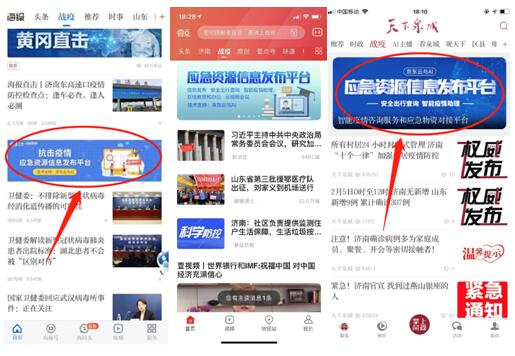 京东云与AI济南方面携手大众网新闻客户端、齐鲁晚报齐鲁壹点APP、济南电视台天下泉城APP等主流媒体,共同“战疫”,借助科技产品传递有温度的服务和资讯,更加方便民众查阅和使用疫情防护产品。