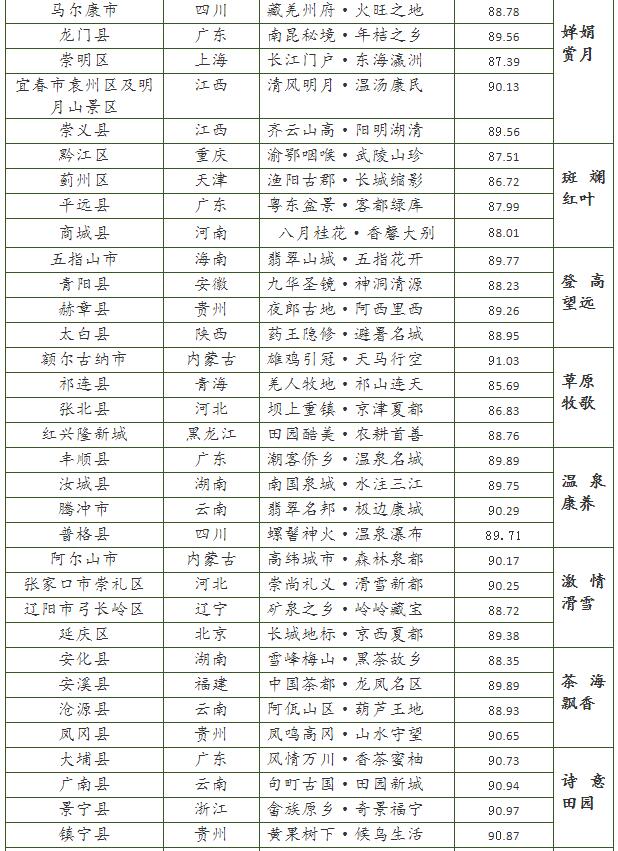 11、康养好:国土面积、人口环境和城市规模以“县域”为单元,拥有适度的康养规划、政策、资源、项目、客群、产品与服务系列,具备较好的候鸟旅居康养条件。