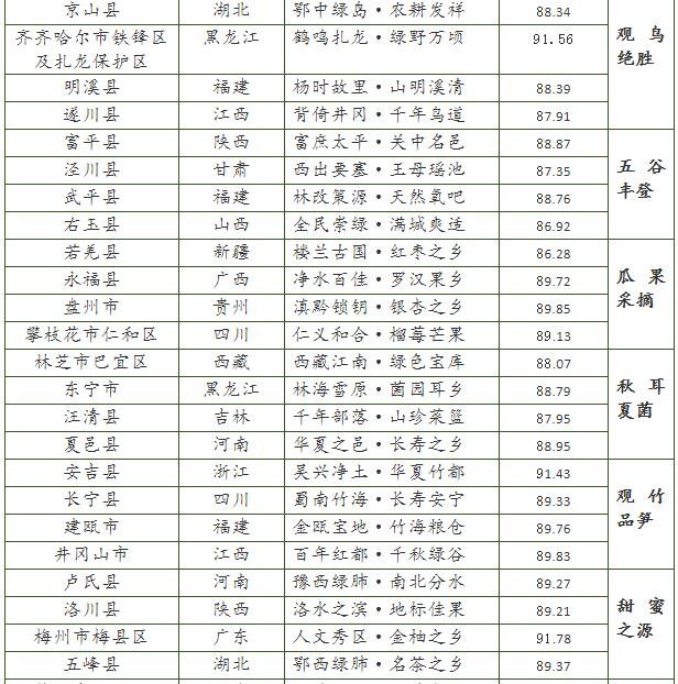 9、底子好:评为“国际慢城”或“百佳深呼吸小城”,是“全域旅游示范县”或“健康旅游示范县”,拥有“地理标志产品”等特色产品,主动参与中国生物多样性保护行动,拥有独特的鸟类或候鸟栖息地;