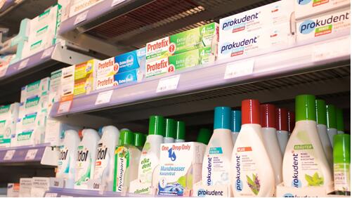 (德国日化超市货架上的prokudent必固登洁产品)
