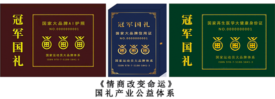 《情商改变命运》专著将国礼产业从理论上划分三个产业节点-城市名片、国家大牌、冠军国礼。城市名片是区域头部品牌的加速培育平台。国家大牌是国家头部品牌的加速培育平台。冠军国礼是国际头部品牌的加速培育平台。全球头部品牌加速器以《国家大品牌AI护照》《国家大品牌信用证》《国家再生医学大健康身份证》为价值核心。