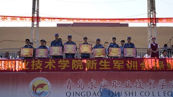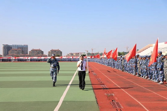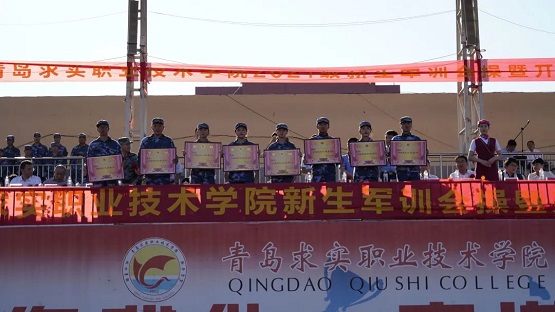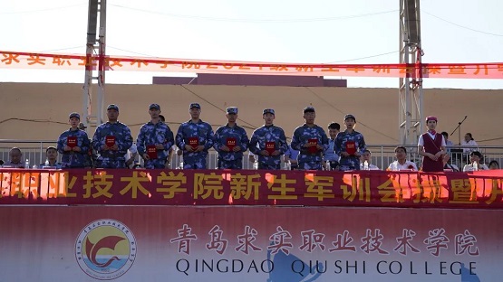 金秋送爽,丹桂飘香,又是一年开学时。9月8日下午,青岛求实职业技术学院21级新生军训会操暨开学典礼在学院体育场隆重举行。为期一周的军训充实而紧张,今天21级新生以昂扬的姿态闪亮登场,接受领导和老师们的检阅。青岛求实职业技术学院董事长林夕宝、青岛求实职业技术学院院长邹树梁、第十二届青岛市政协副主席刘西山、青岛机场建设原副总指挥张会进、青岛市政协经济委员会副主任管仁成,青岛市潍坊商会名誉会长、青岛海昌达机电有限公司董事长赵炳民,青岛市潍坊商会党支部书记、青岛海奕医疗器械有限公司董事长郑广鹏,青岛市潍坊商会秘书长、青岛禾牧一族农业科技有限公司总经理姜淑芹,青岛博涵泽润文化传媒有限公司总经理杨永锋等出席了大会,大会由青岛求实职业技术学院副院长刘美云主持。