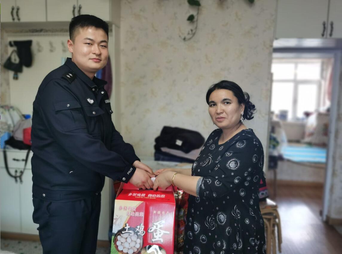 活动中,民警深入各结对亲戚家中,为他们送上祝福的同时还准备了生活必备用品,在与亲戚交谈间详细了解结对亲戚近期的家庭生活状况,认真听取亲戚困难,并以通俗易懂的语言向结对亲戚讲解宣传了民族团结政策,引导群众要牢记党的民族团结政策,听党话,跟党走,以实际行动积极参与到民族团结进步创建活动中来。最后还不忘叮嘱亲戚,疫情期间一定要提高自我防护意识,勤通风、勤洗手,戴好口罩,减少不必要出行。大家纷纷表示,感谢党和政府对他们的关心和帮助,让他们感受到“民族团结一家亲,互帮互助见真情”的真挚情谊。(作者:王梦溪 仲伟宇)