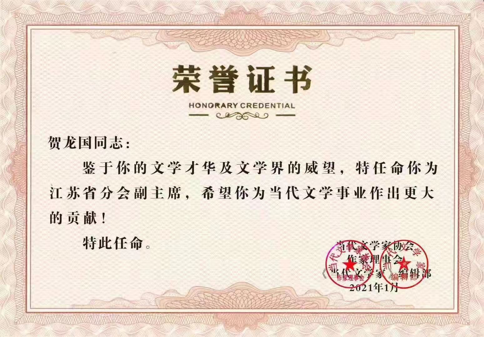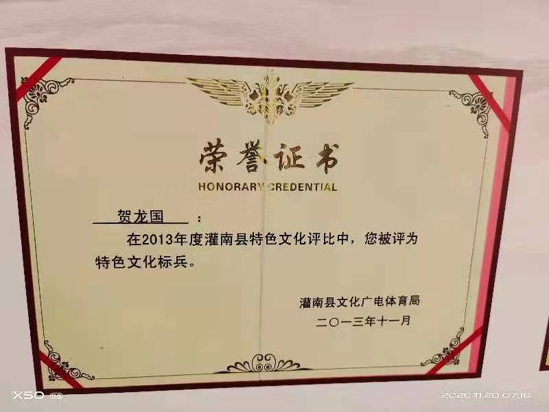 贺龙国先后获得灌南县“特色文化标兵”“江苏省全民阅读先进个人”“全国优秀志愿者”“全国爱心大使”“中国公益大使”荣誉。贺龙国公共图书馆2018年荣获连云港市“首批农家书屋示范点”“连云港职工书屋示范点”称号,截入2018中华人民共和国年鉴。2020年4月,贺龙国家庭获评第四届江苏省书香家庭、连云港市十大最美家庭。