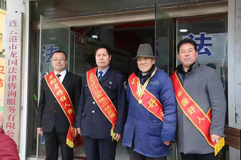 贺龙国还热心公益事业,积极参加硕项湖生态保护、新沂河堤巡查、关爱敬老院五保老人以及捐助特困家庭学子入学等志愿服务,多次被评为优秀志愿者。他主动融入乡村基层普法工作,他结合自身多年普法维权经历和经验,潜心十多年编写出版三十万字《百案说法》一书,免费赠送给周边群众和来图书馆学习的读者。他还奔赴开山岛,向全国时代楷模、守岛英雄王仕花赠送自己创作的《百案说法》《贺龙国公共图书馆》等作品及相关图书,丰富守岛卫士的业余文化生活。