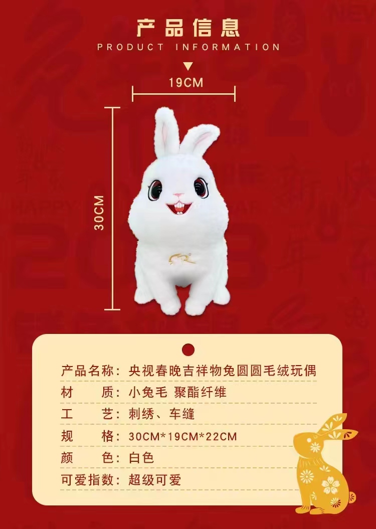 兔年的大年初一,“兔圆圆”毛绒版玩偶也跟大家见面了,一只可可爱爱、憨态可掬的萌白兔,小朋友都特别喜欢和它做好朋友。