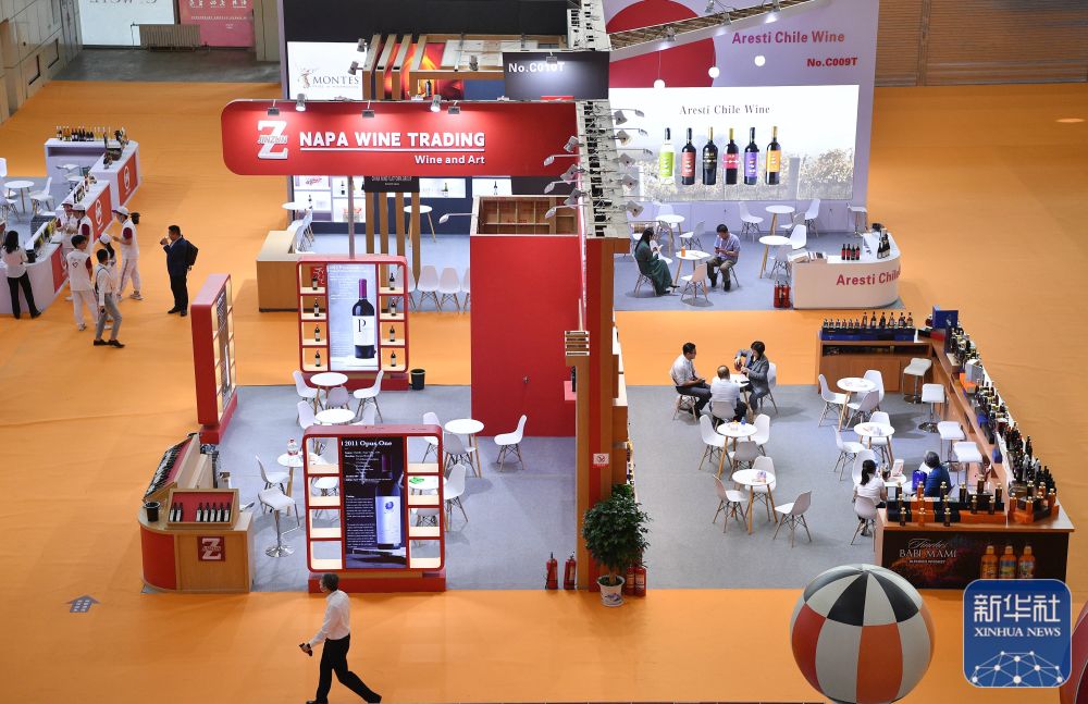 ↑6月9日,参会嘉宾在展会现场品酒。