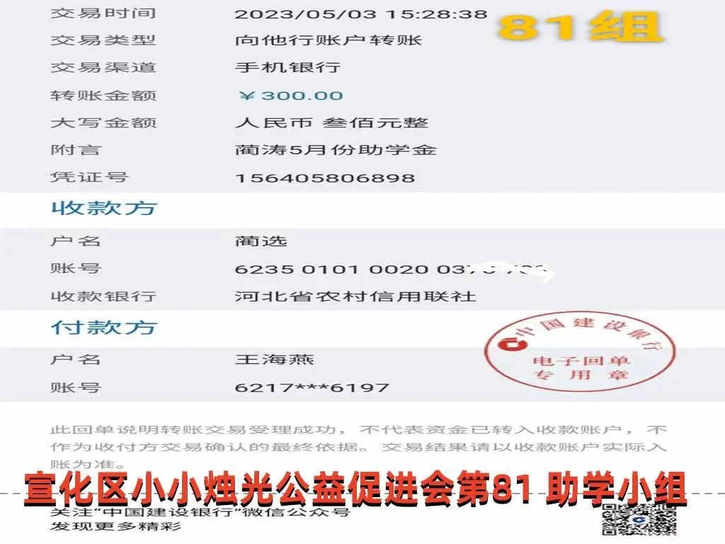 “精准扶贫,爱心助学”是张家口市宣化区小小烛光公益会一直以来的助学目标。该公益组织自成立以来,坚持对经过考察符合贫困学生条件的孩子发放助学金和学习用品,九年来从未间断。让更多的贫困学生能够健康成长、顺利完成学业,对他们的生活和学习起到了极大帮助和鼓励作用。
