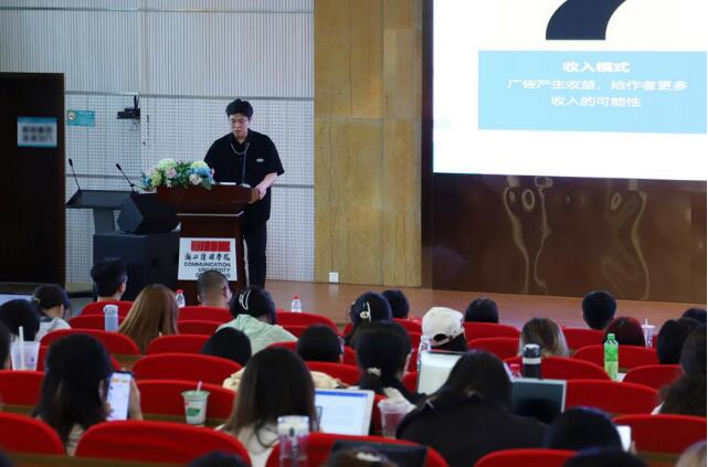纵横小说副总裁孙新向在场的师生们介绍了纵横小说的企业情况。纵横小说建站十五年,已拥有 114 万位作家,20余万部作品和专业的编辑团队,通过对重点作者作品的整体运营,与合作伙伴联合进行IP相关项目的投资开发,立志于打造基于文学版权的泛娱乐生态圈。除此之外,纵横小说致力于培养优秀作者、孵化优质作品。