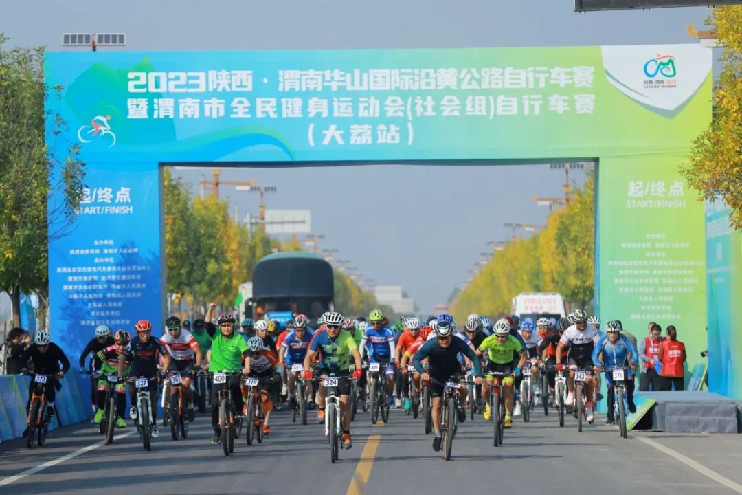 2023陕西·渭南华山国际沿黄公路自行车赛暨渭南市全民健身运动会(社会组)自行车赛于10月22日在韩城市司马迁祠游客中心鸣枪发车。这场赛事分为专业组和大众组两个组别,吸引了国内外近700名骑手和体育爱好者同场竞逐。此次赛事以其优美的赛道和精彩的比赛吸引了众多车迷的关注,成为渭南市体育赛事的一大亮点。